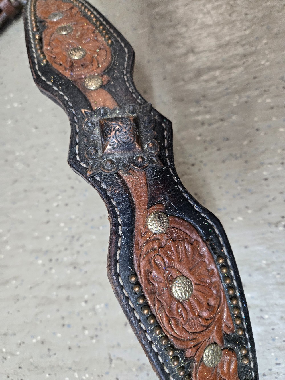 Home / Breastcollars / Dark Oil Breastcollar / Light Tooling / Conchos