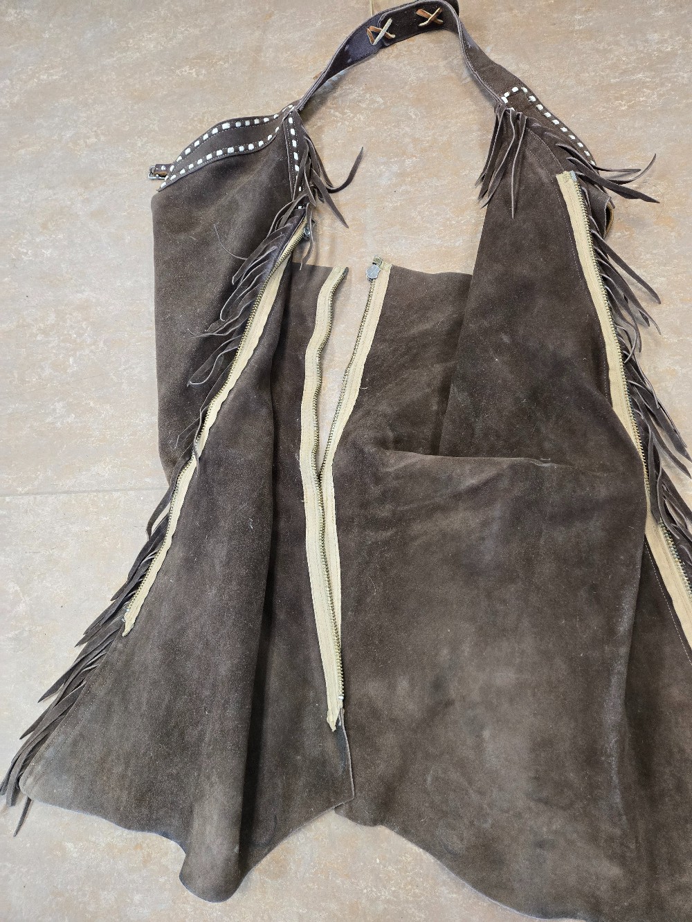 Home / Chaps, Chinks And Shotguns / Brown Suede Shotguns / White Buckstitch M/L