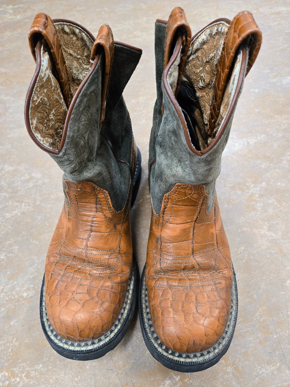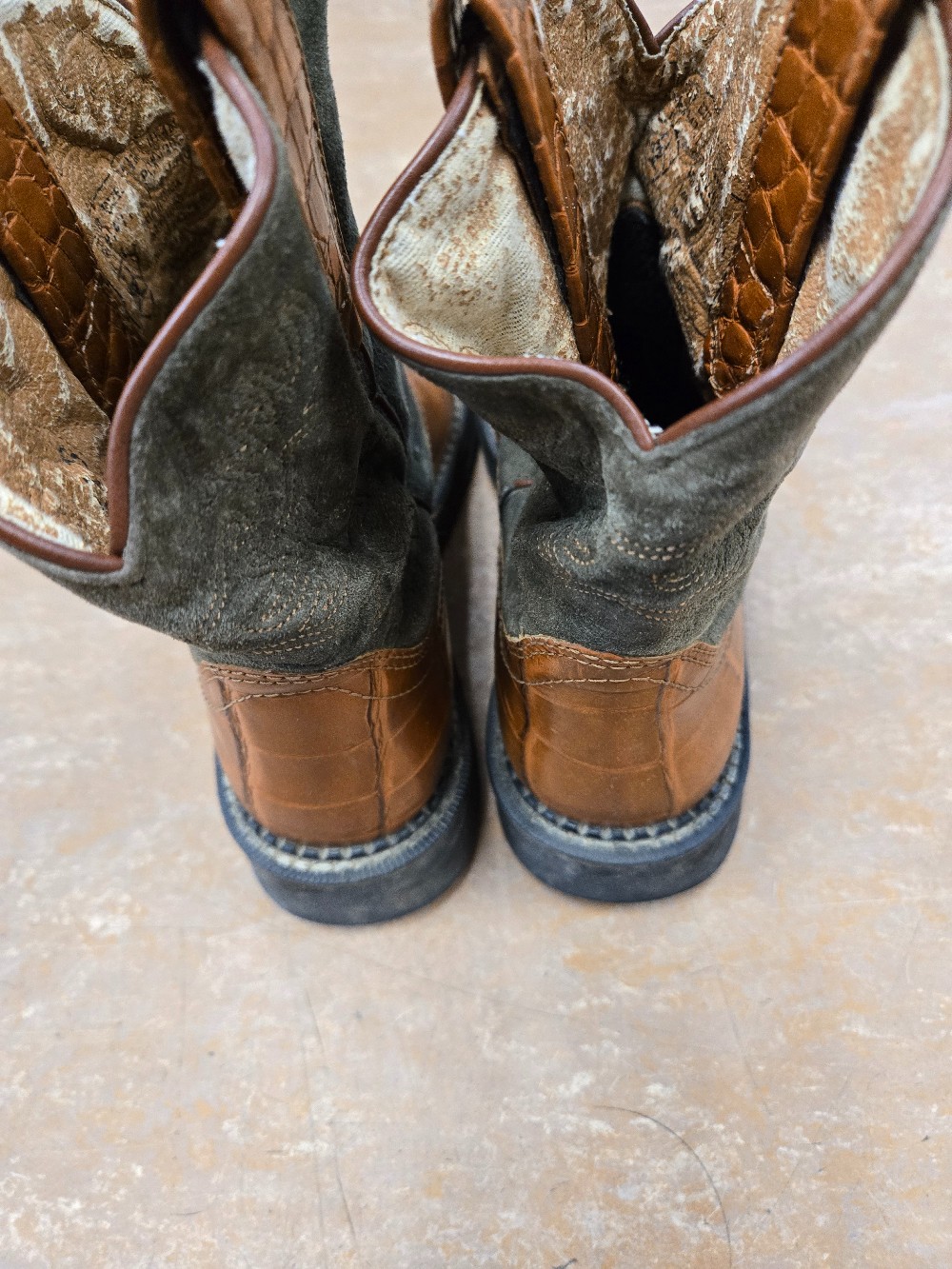 Home / Cowboy Boots / Ariat "Fat Baby" Tan/ Green Leather ladies 6.5