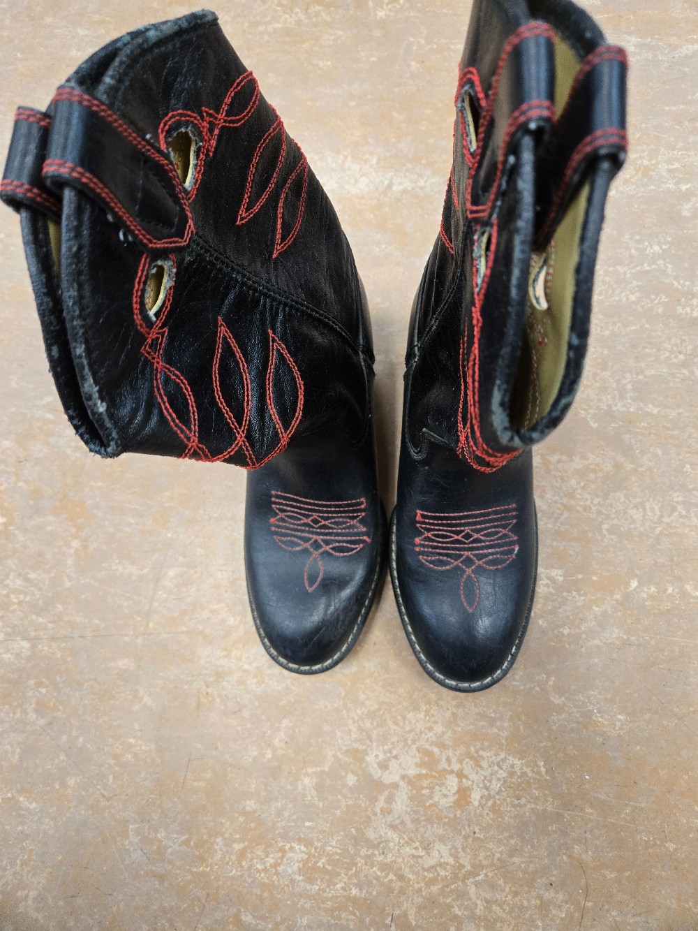 Black Round Toe Boots / Red Stitch kids sz 13