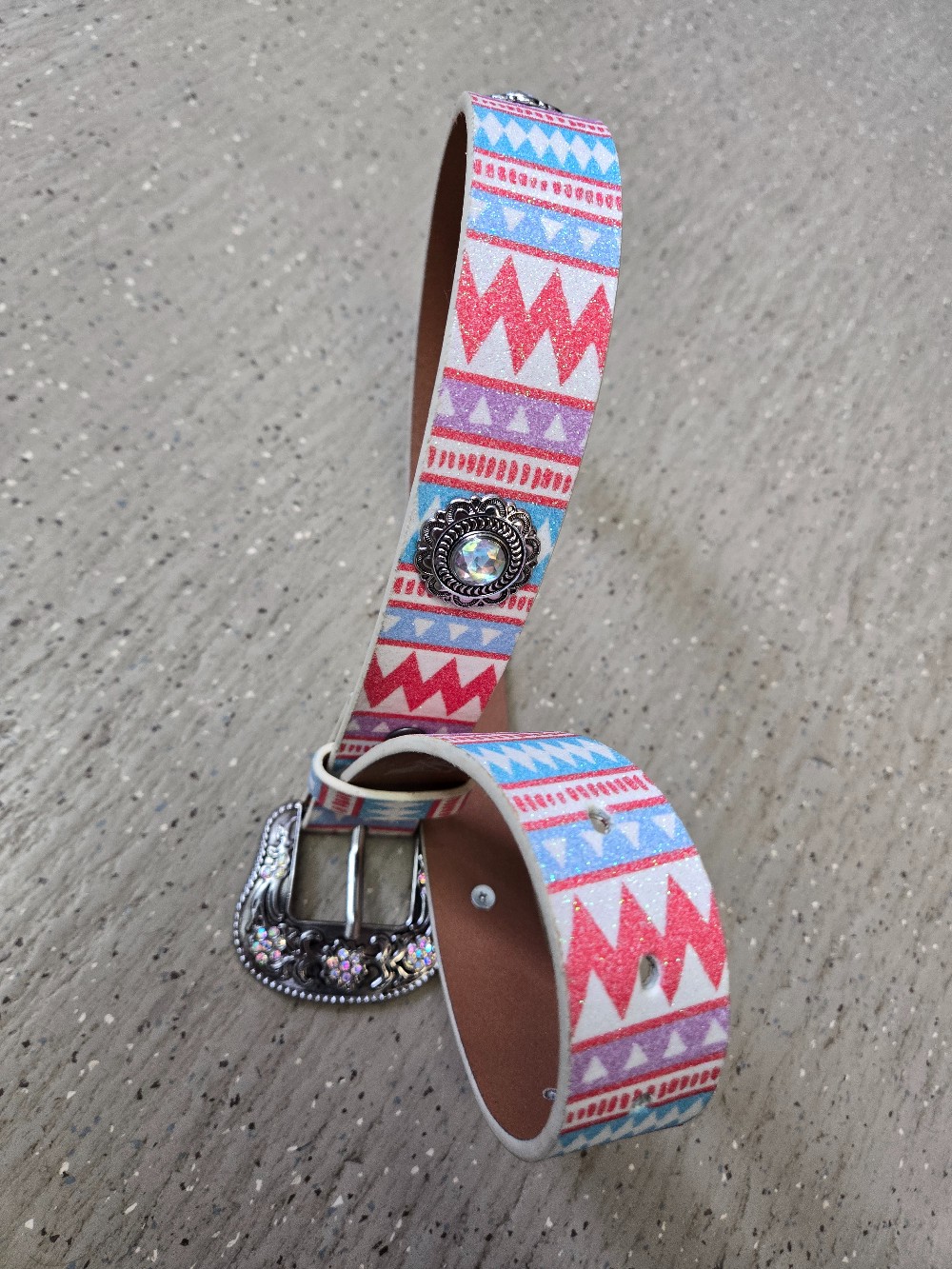 Angel Ranch Pink/ Blue Aztec Glitter Belt kids sz 24"