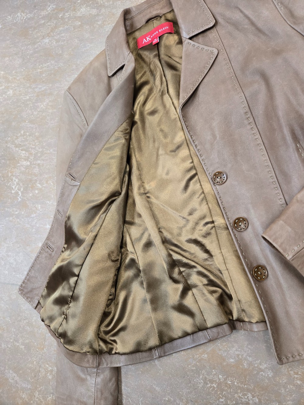 Home / Outerwear / Anne Klein Tan Leather Jacket / Fully lined MEDIUM