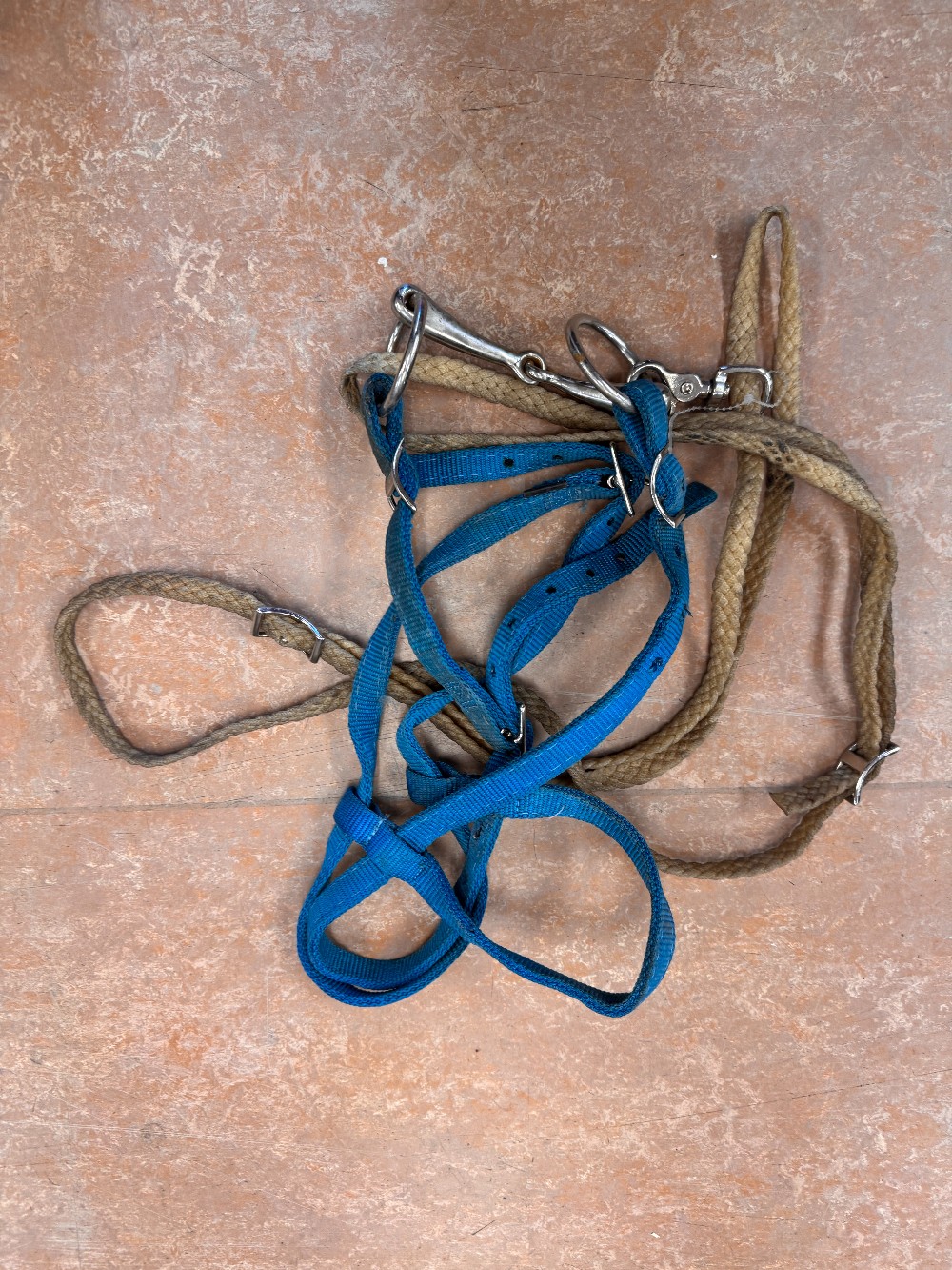 Pony Nylon Blue Headstall w/ snaffle and braided reins