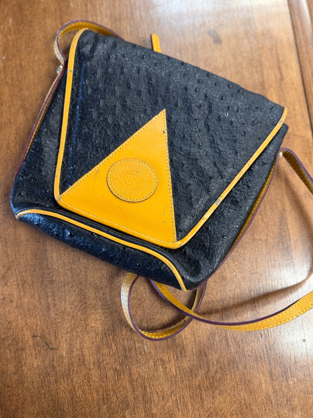 Home / Purse / Bellerose Mustard and black Ostrich purse