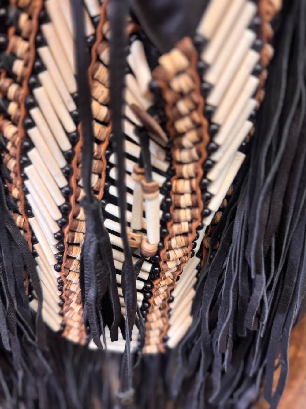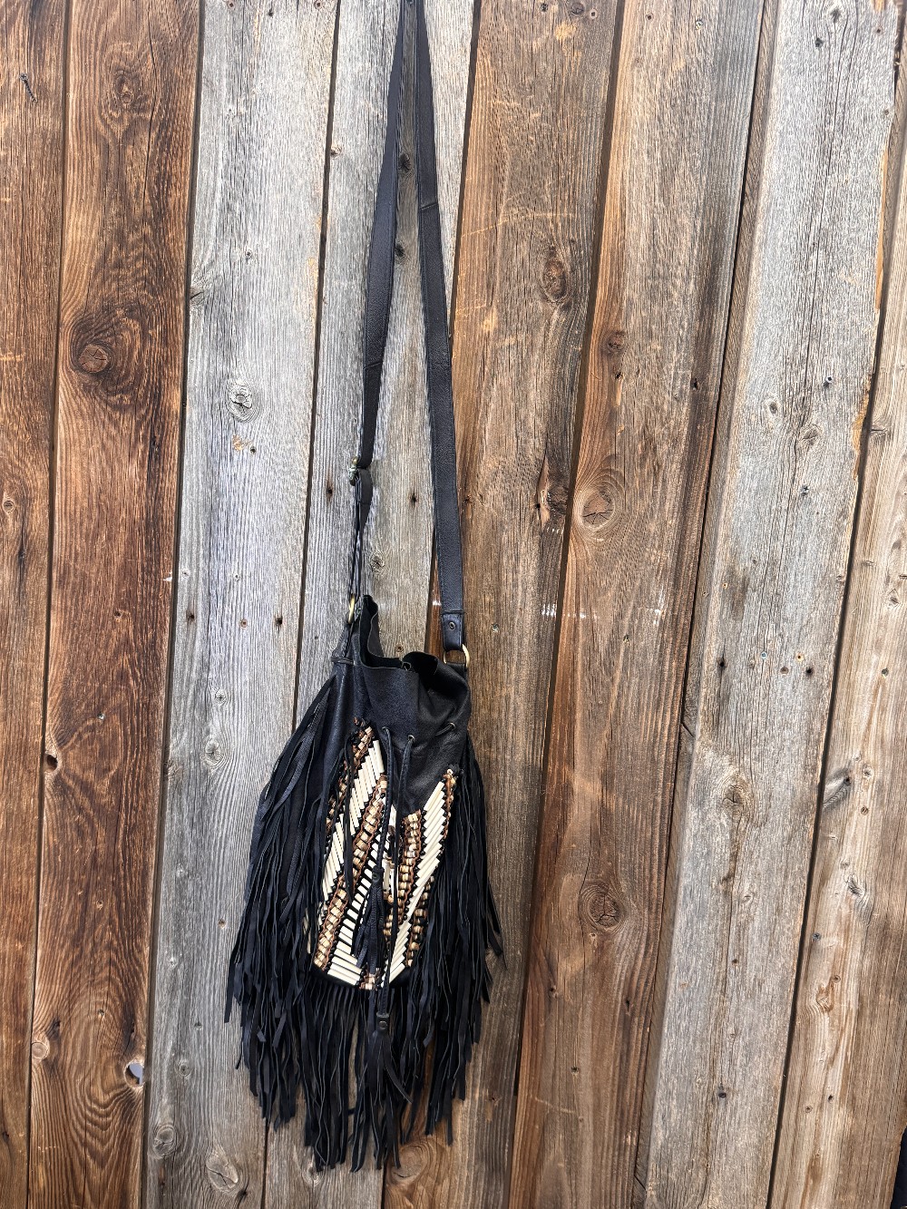 Home / Purses And Bags / Beaded and Fringe Black soft leather drawstring Purse