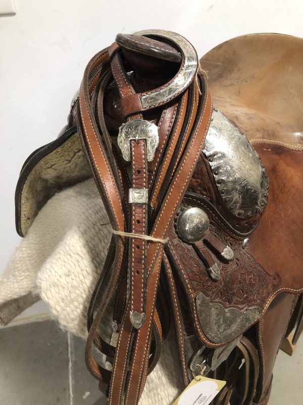 Good condition. Comes with matching headstall and saddle blanket, and latigo