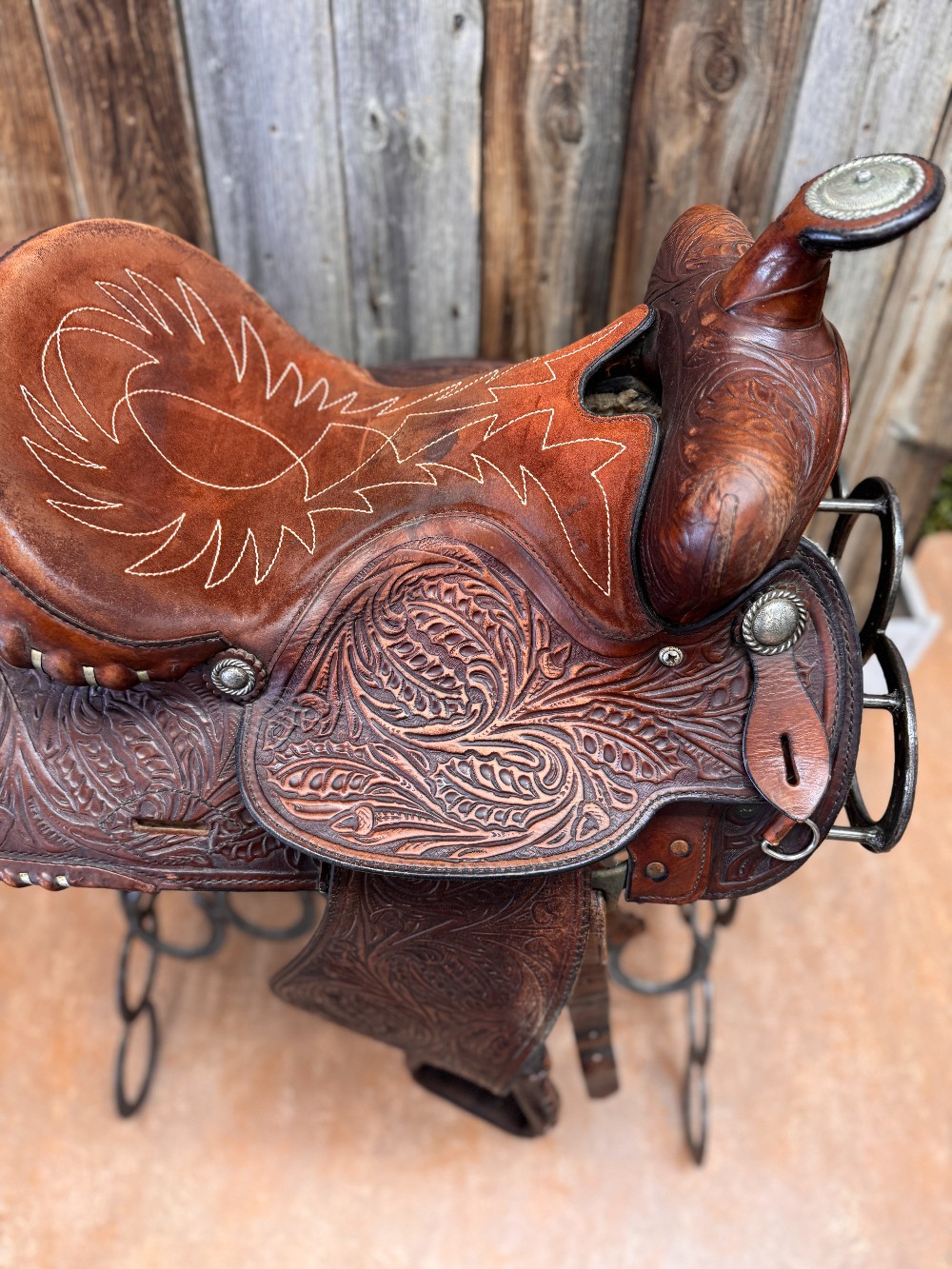 Simco Tooled all around Dark oil Saddle 15" seat 6" Gullet