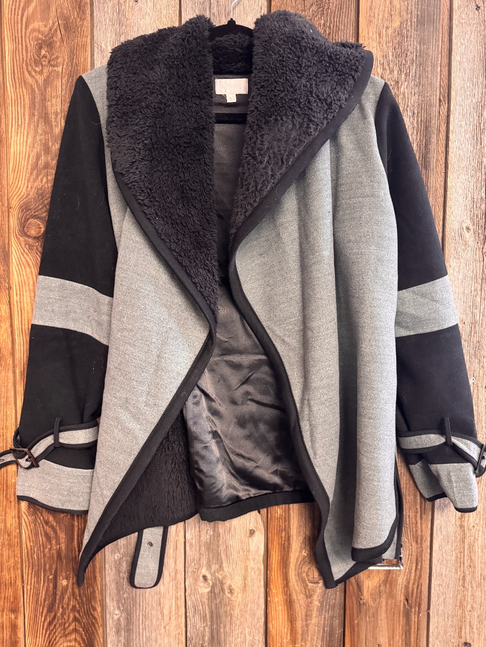 Adore Wrap Jacket with faux Sherpa Lining and cowl neck Size L