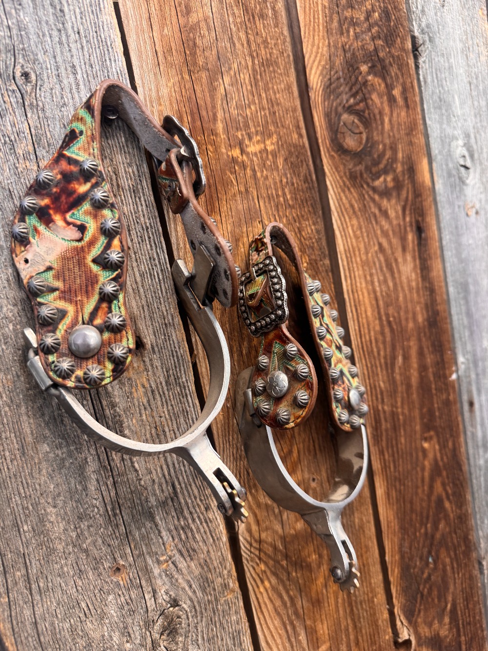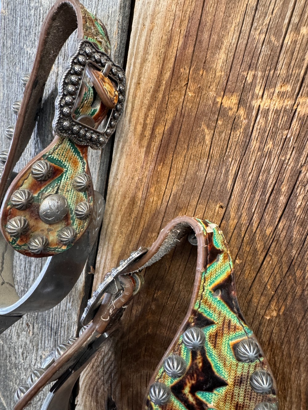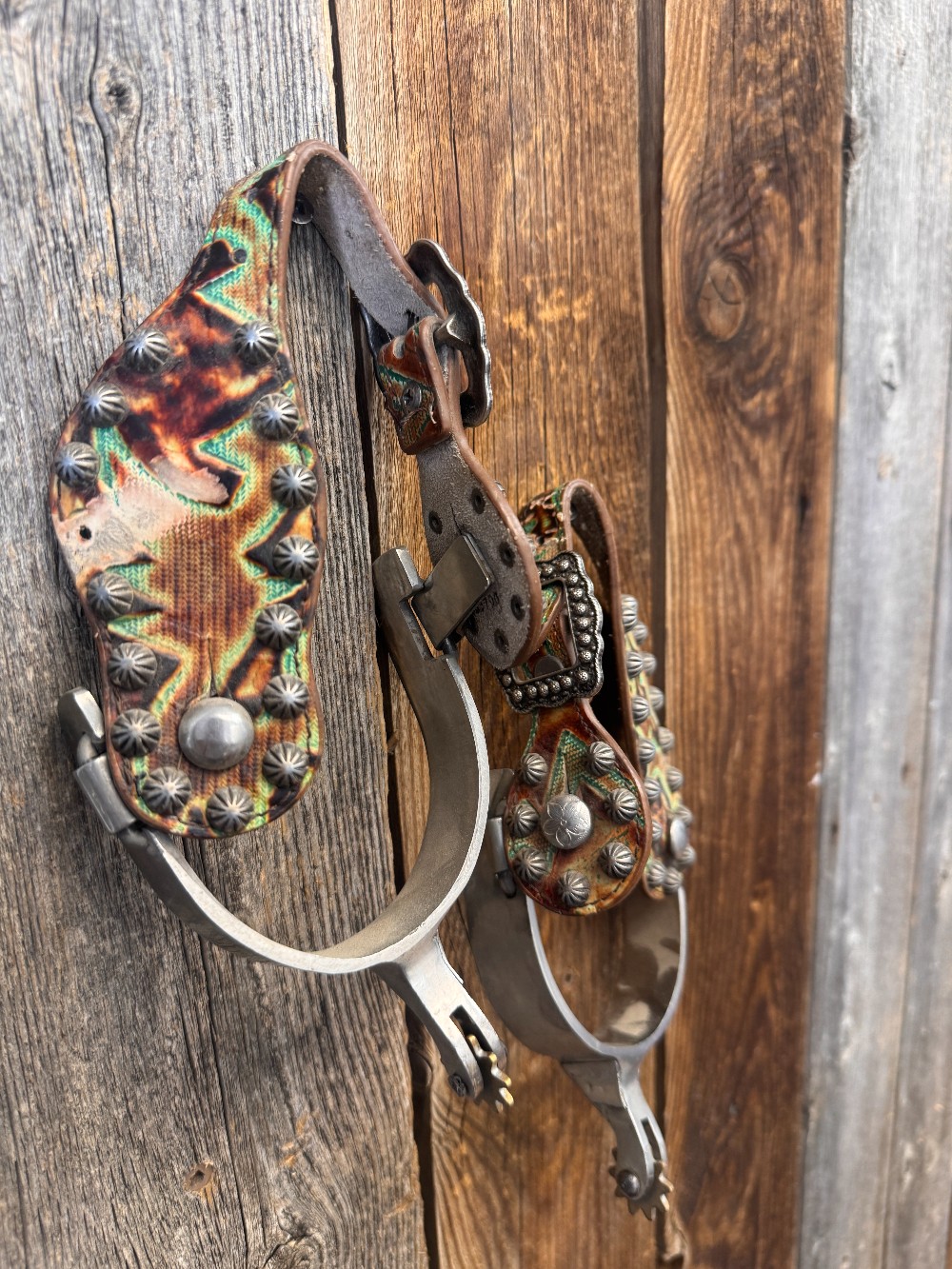 Engraved spurs and green spur straps