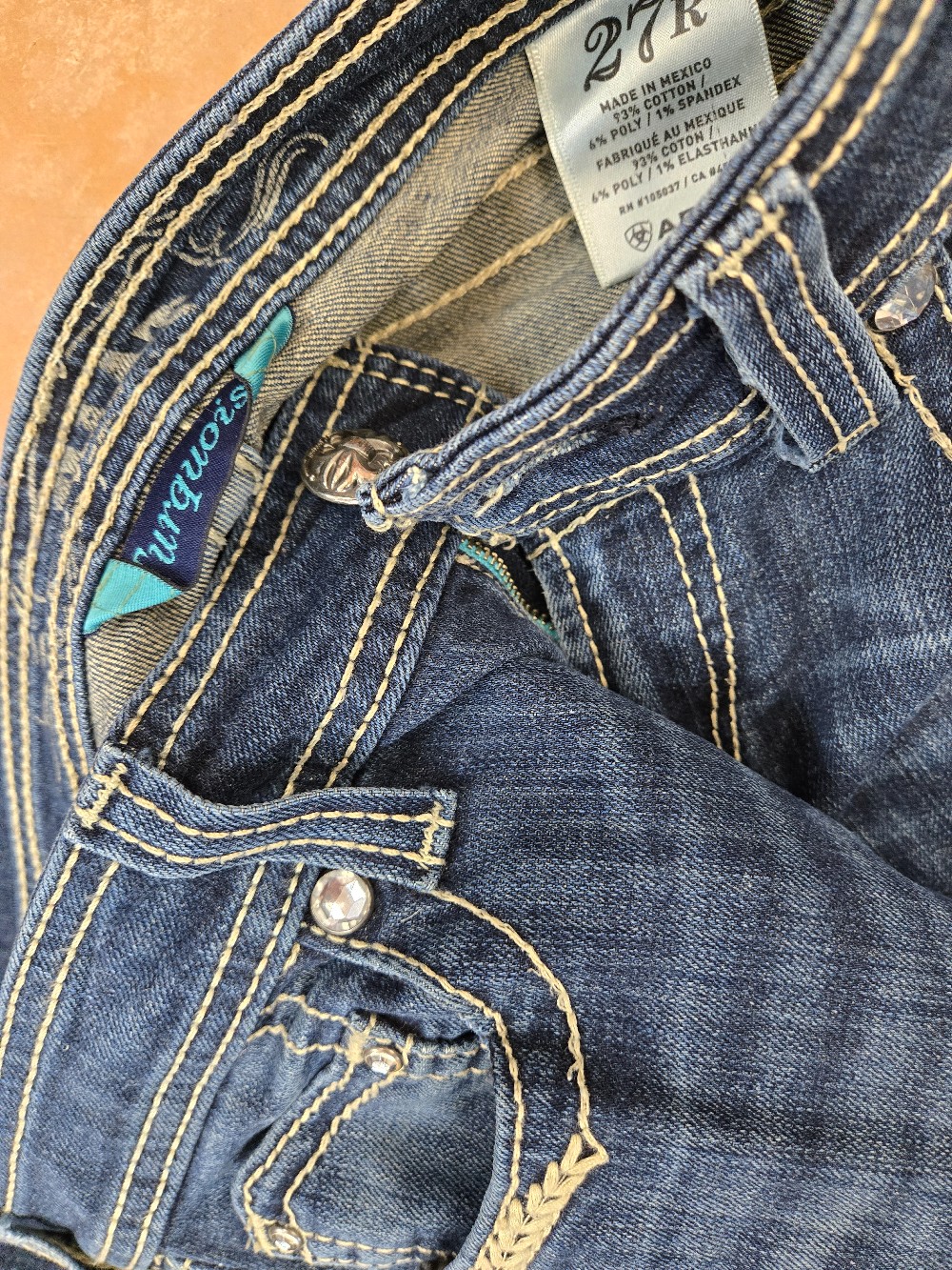 Home / Women's Jeans / Ariat ' Turquoise ' Slim Boot Cut/ Detail pocket 27 R