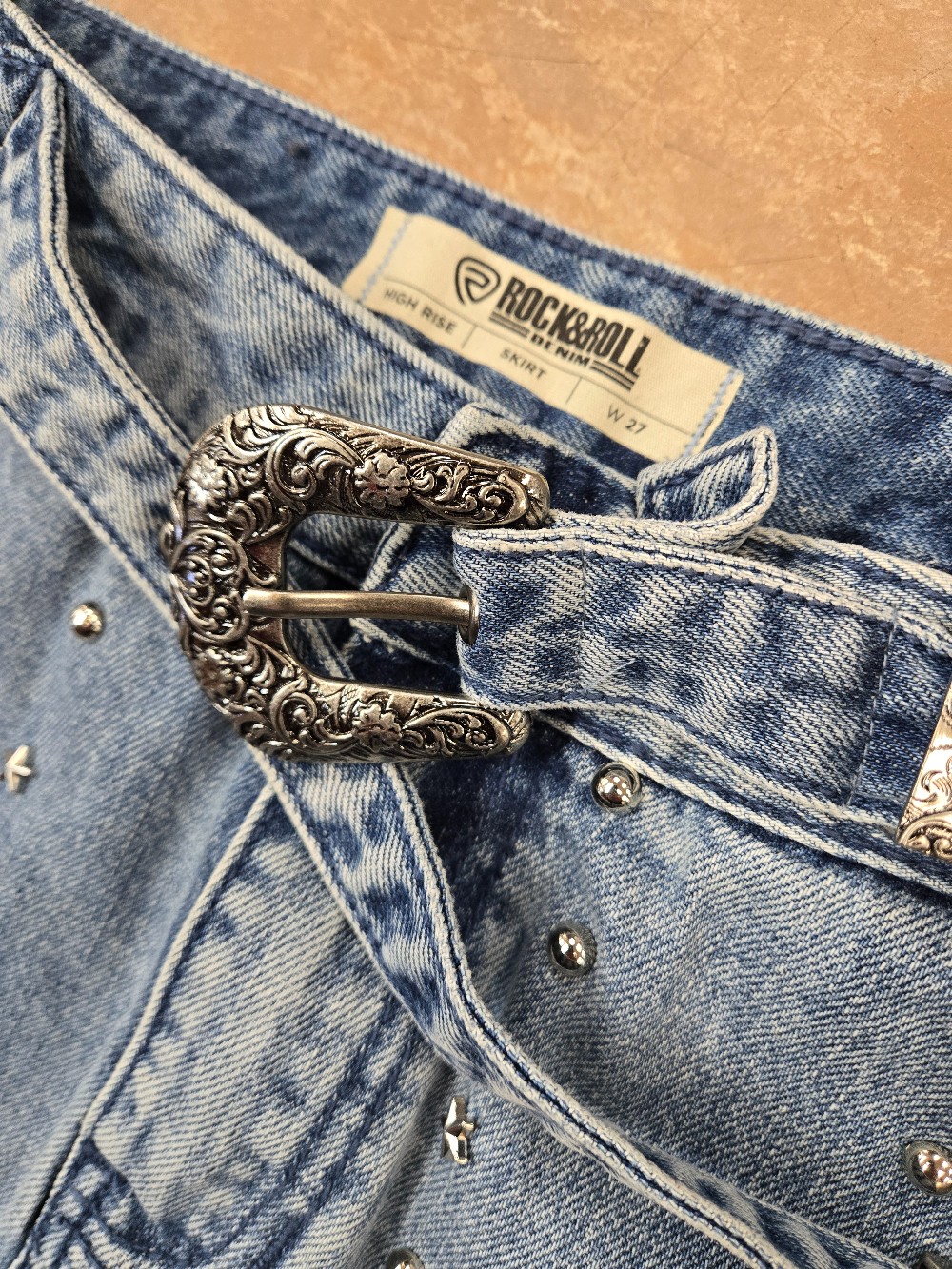 Rock & Roll Denim Skirt / Bling Buckle sz 27"