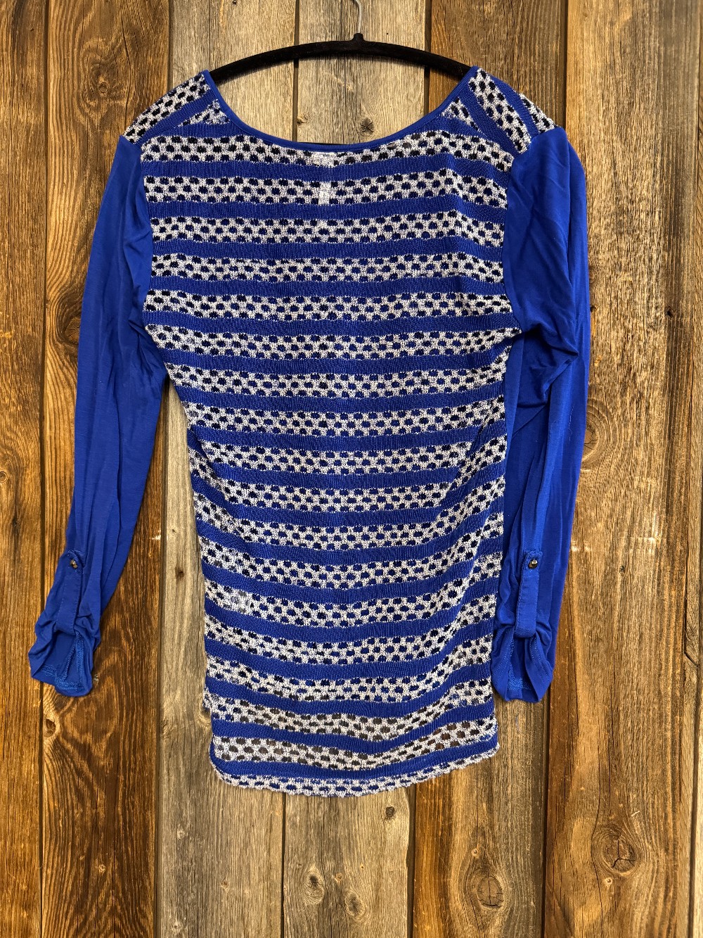 Home / Womens Apparel / Blue Long sleeve Adiktd Shirt w/ lace-ish back Size L